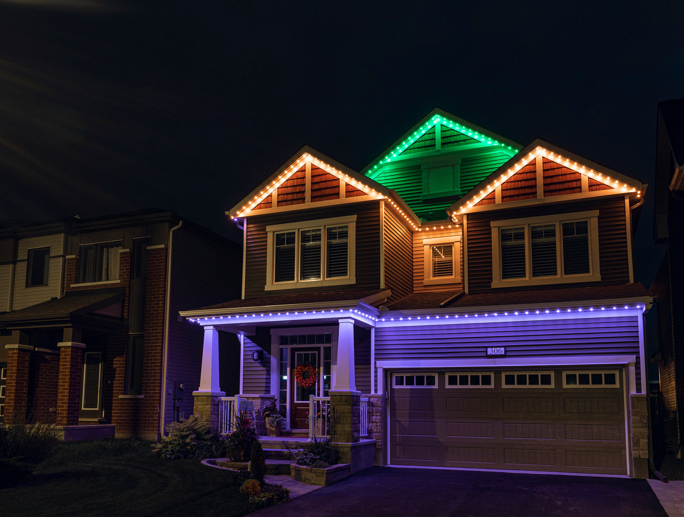 Lumino offers the installation of permanent Christmas lights whose colors match those of the soffits of your home to offer a harmonious and sophisticated effect. These lights are not only Christmas lights, they can also be used as balcony lights, patio lights or for special occasions like Halloween, St. Patrick's Day or for a child's party.