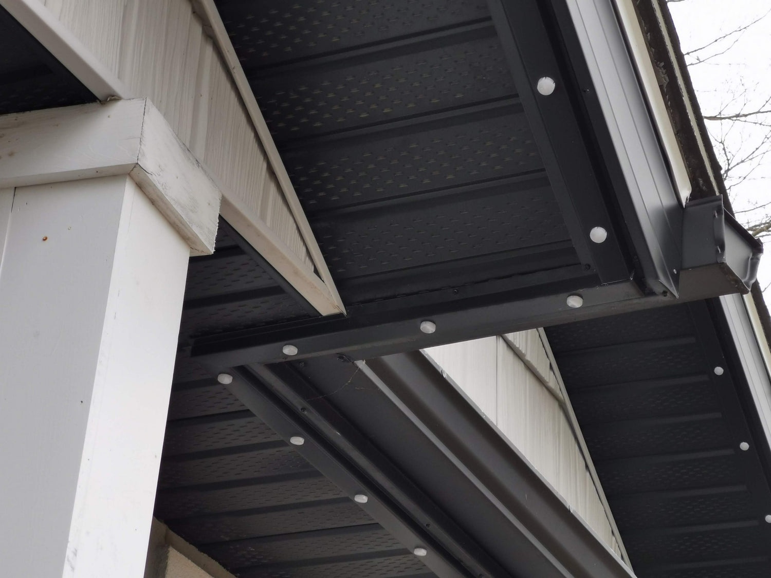 Our aluminum rails match the color of the soffits. They are invisible during the day and magnificent at night. We also hide the wiring inside the rail for a clean, professional look.